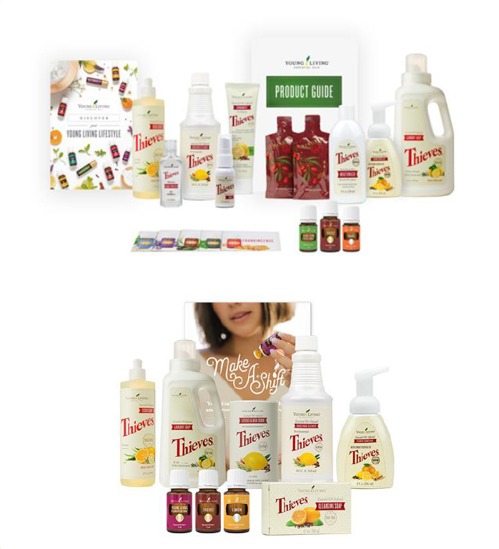 You can start with one of the Premium Starter Kits Young Living put together for you or with single items you desire to try out. There are three types of starter kits you can chose from to get acquinted with Young Living and their products: with a diffuser, based on their cleaning line Thieves, and NingXia, a line within their culinary section. See below the kits YL offers.